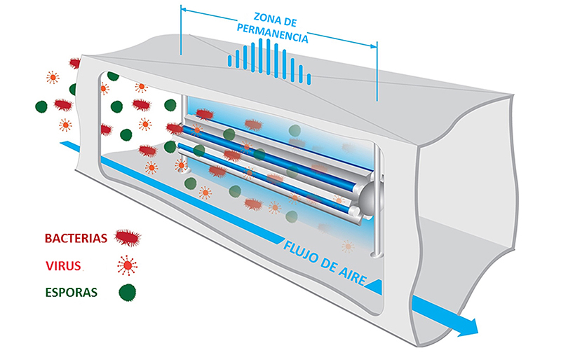 Los emisores UVC fueron desarrollados para eliminar la carga microbiana aerotransportada como así también la acumulación de moho y bacterias que se forma en la serpentina de enfriamiento de los equipos de aire acondicionado.